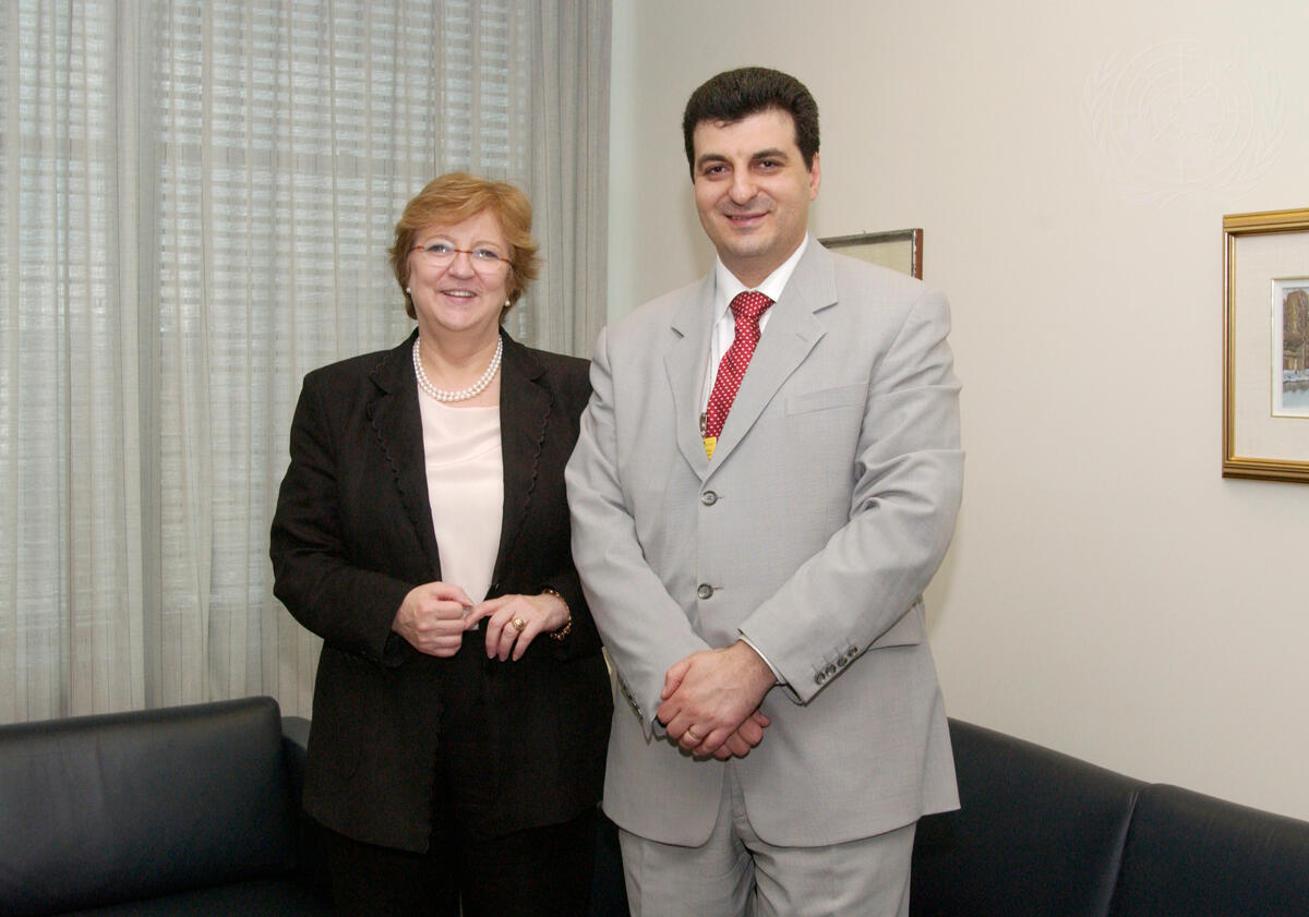 Deputy Secretary-General Louise Fréchette (left) meets with Mihnea loan Motoc, Permanent Representative of Romania to the United Nations.