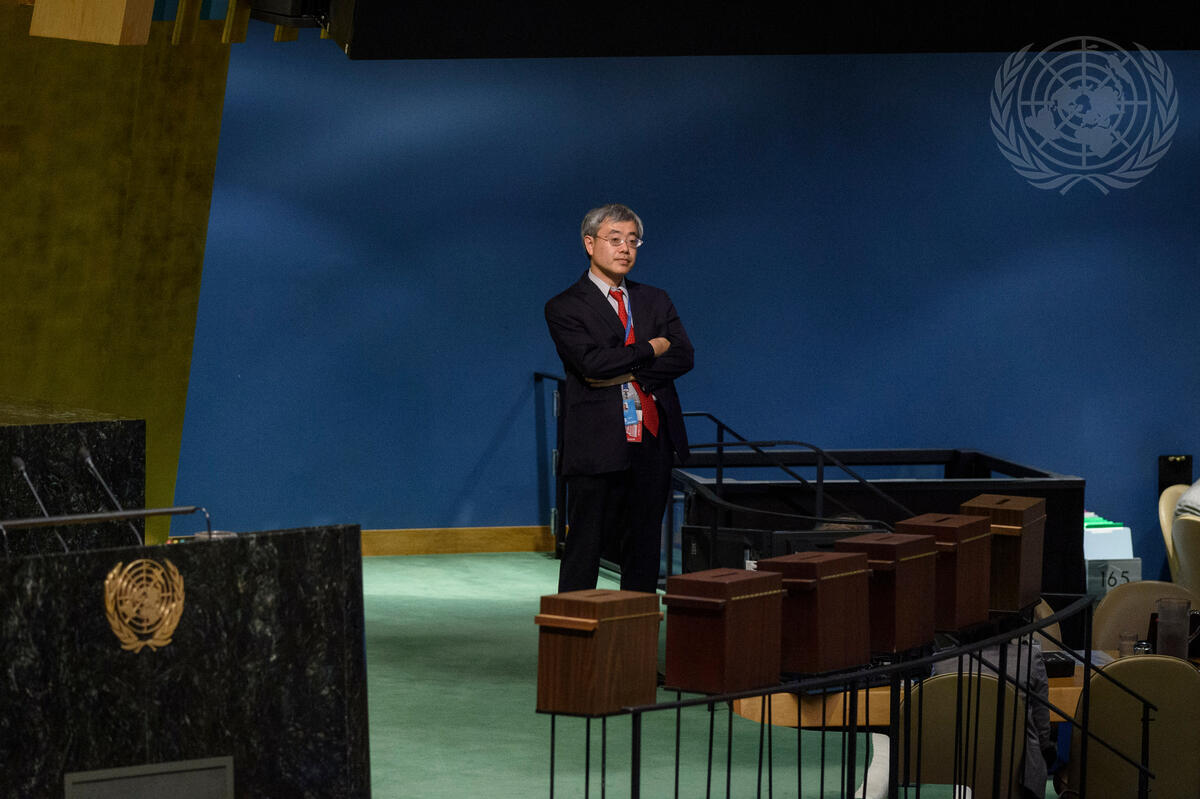 Kenji Nakano, Chief of the General Assembly Affairs Branch of the Department for General Assembly and Conference Management (DGACM), takes a look at the ballot boxes.