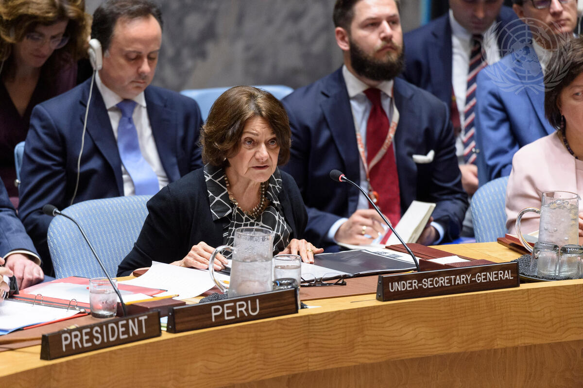 Rosemary DiCarlo, Under-Secretary-General for Political and Peacebuilding Affairs, briefs the Security Council on the situation in Ukraine.