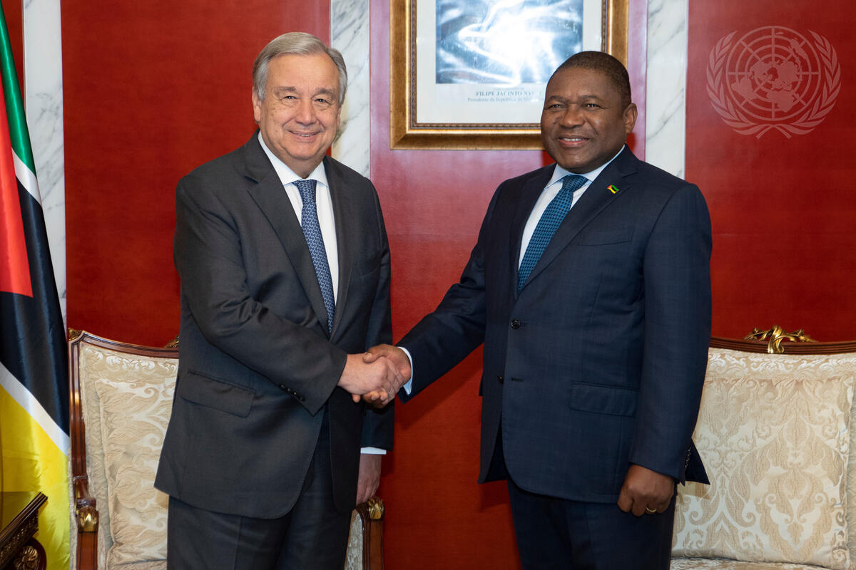 Secretary-General António Guterres (left) meets with Filipe Nyusi, President of the Republic of Mozambique.