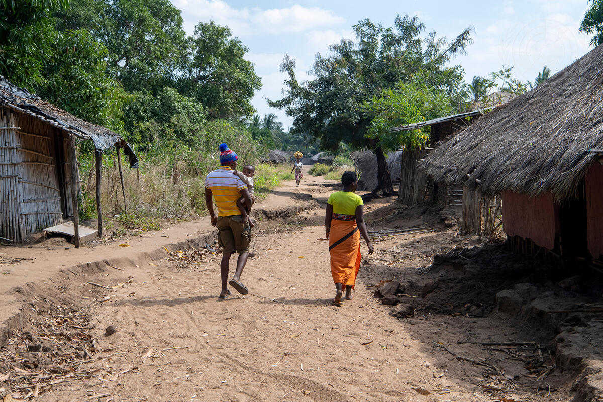 A family walks in their old village Nanjua, in the Cabo Delgado province.