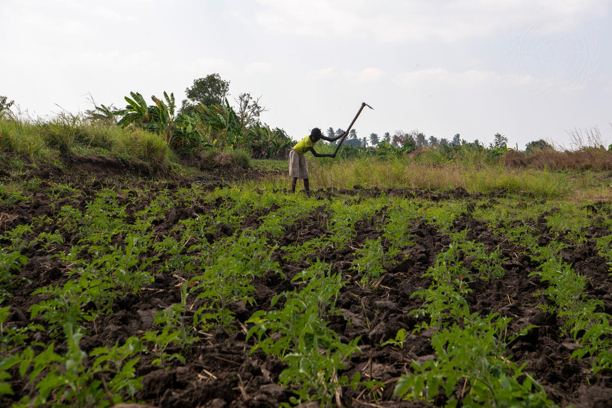 A girl works in the fields outside of the Taratara Camp, in Cabo Delgado province.