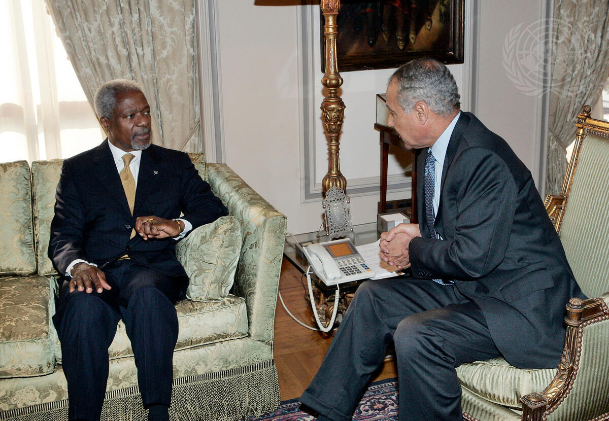 Secretary-General Kofi Annan (left) meeting with Egyptian Foreign Minister Ahmed Aboul Gheit , today in Cairo.