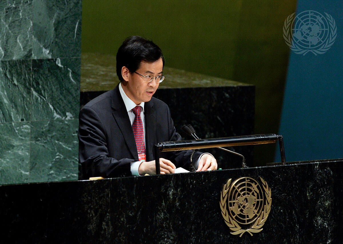 Cheng Jingye, of the People's Republic of China addresses the General Assembly, at UN Headquarters in New York, on the Report of the International Atomic Energy Agency (IAEA).