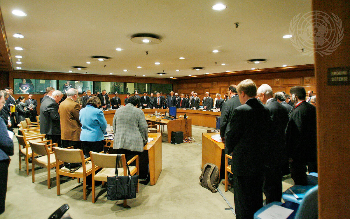 Secretary-General Kofi Annan and members of the United Nations Chief Executives Board for Coordination (CEB) observe a moment of silence at the start of their meeting, at UN Headquarters in New York.