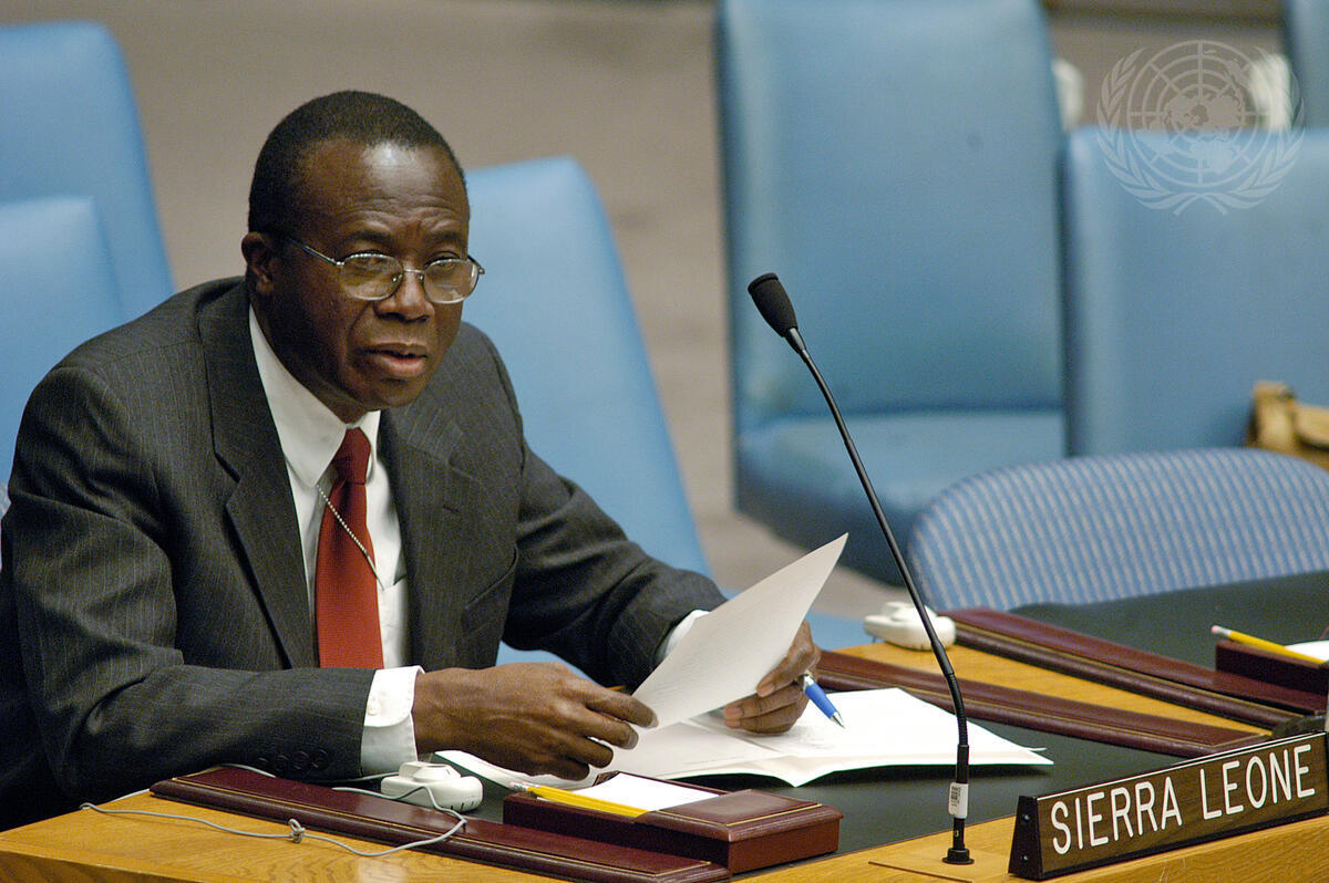 Joe Robert Pemagbi, Permanent Representative of Sierra Leone to the United Nations, addresses the Security Council meeting on the situation in Sierra Leone, today at UN Headquarters. He noted that today's meeting marked an important milestone in the history of United Nations peacekeeping.