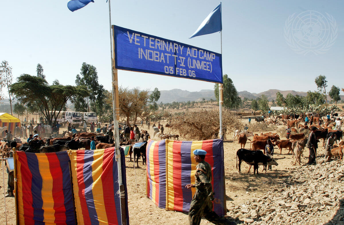 Wide view of the United Nations Mission in Ethiopia and Eritrea (UNMEE) Indian battalion veterinary camp which provides care for local animals free of charge.