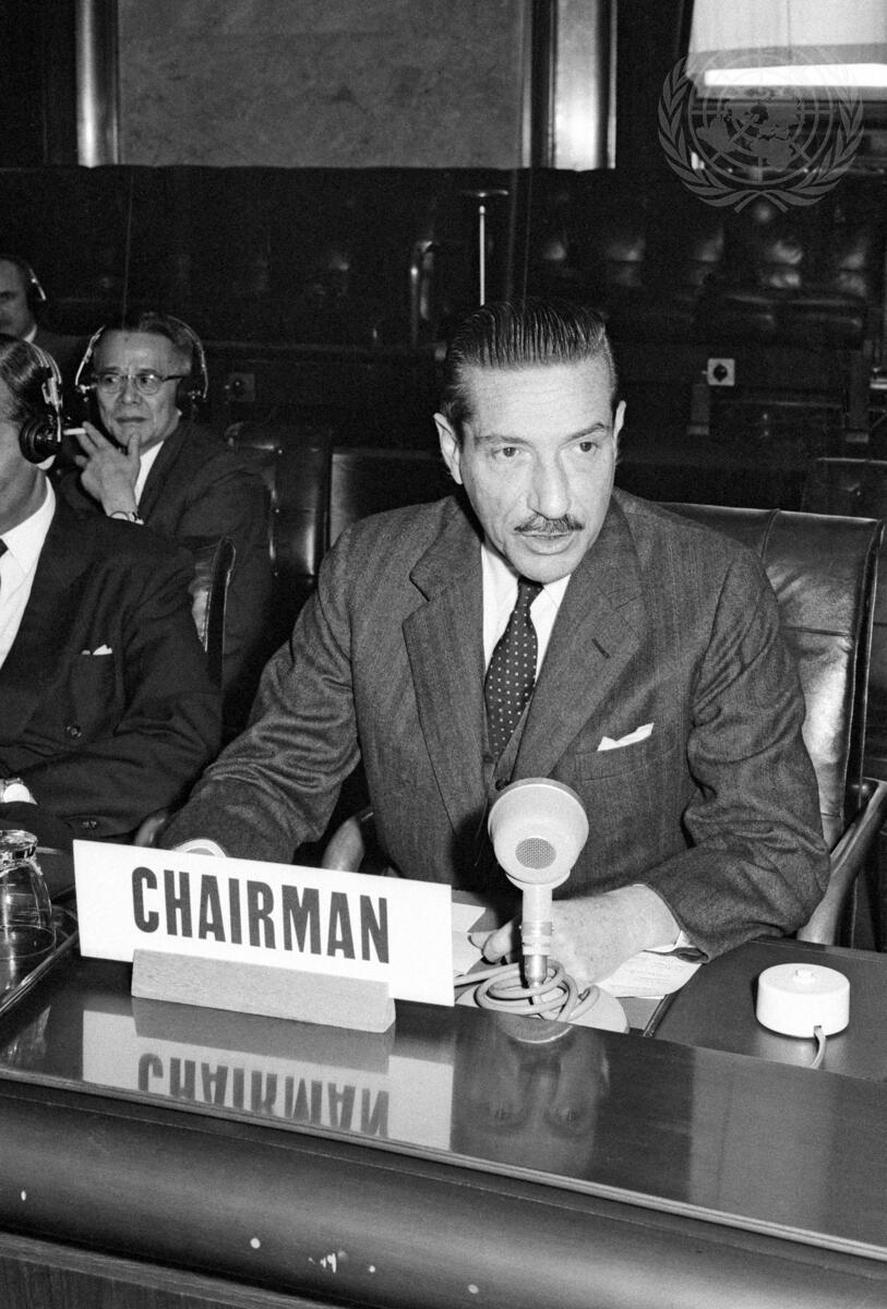 This photograph shows Mr. Mario Amadeo, of Argentina, who was elected Chairman of the current session of the Commission.