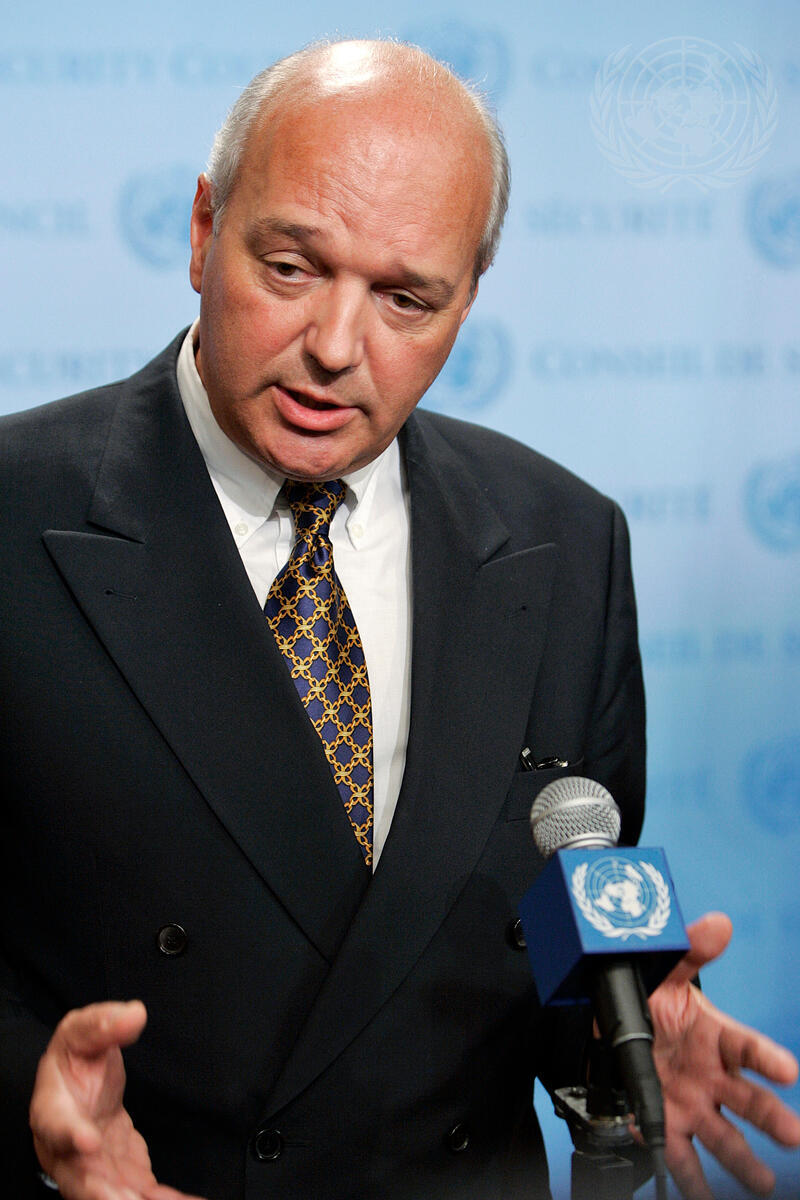 Gérard Stoudmann, High Representative for elections in Côte d'Ivoire, speaks to correspondents outside the Security Council chamber, following a Council consultative meeting on developments in that country, at UN Headquarters in New York.
