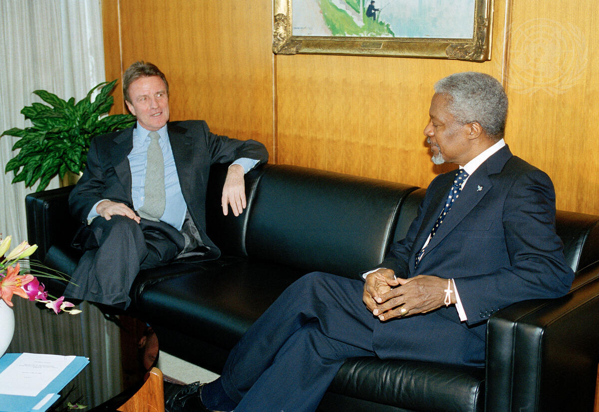 Secretary-General Kofi Annan with Bernard Kouchner (left), his Special Representative and Head of the United Nations Interim Administration Mission in Kosovo (UNMIK).