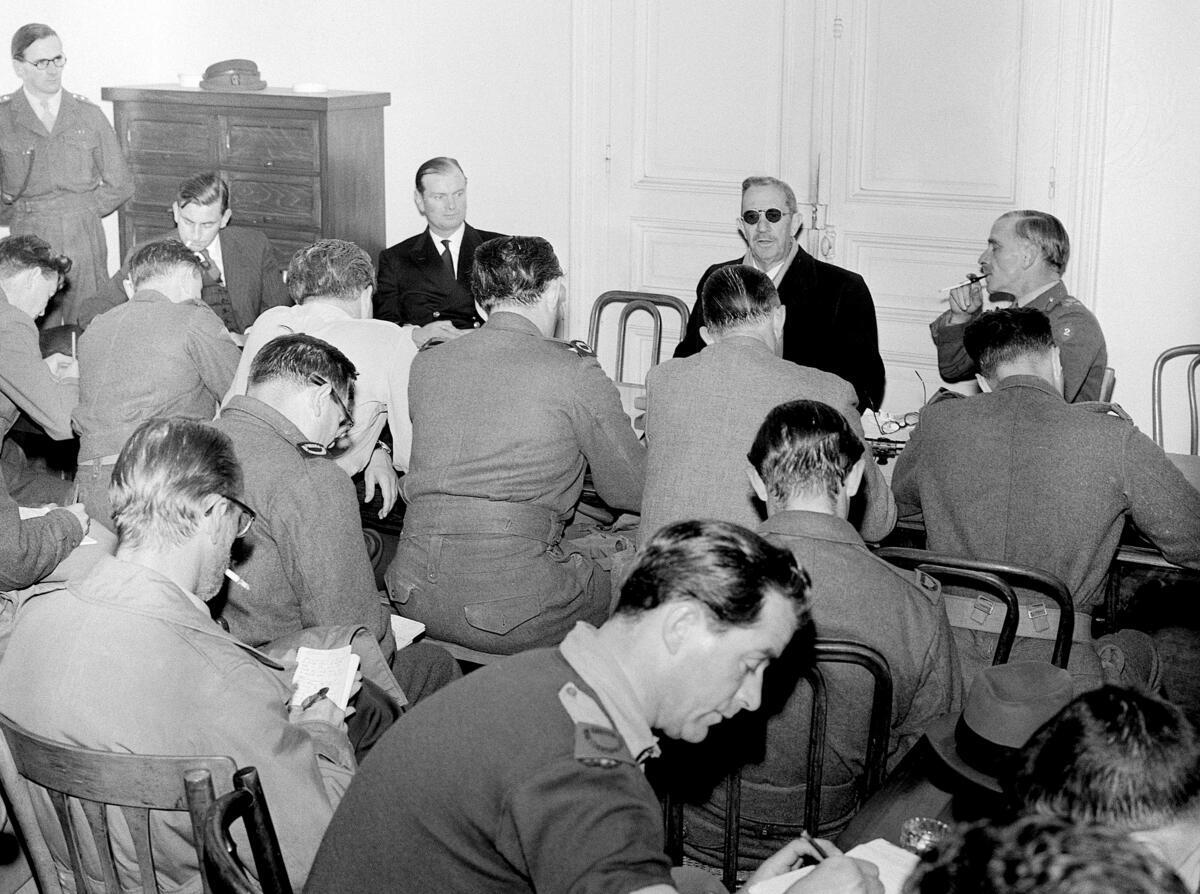 A general view of the press conference held by Gen. Wheeler at Anglo-French Headquarters, Port Said, soon after his arrival in the city.