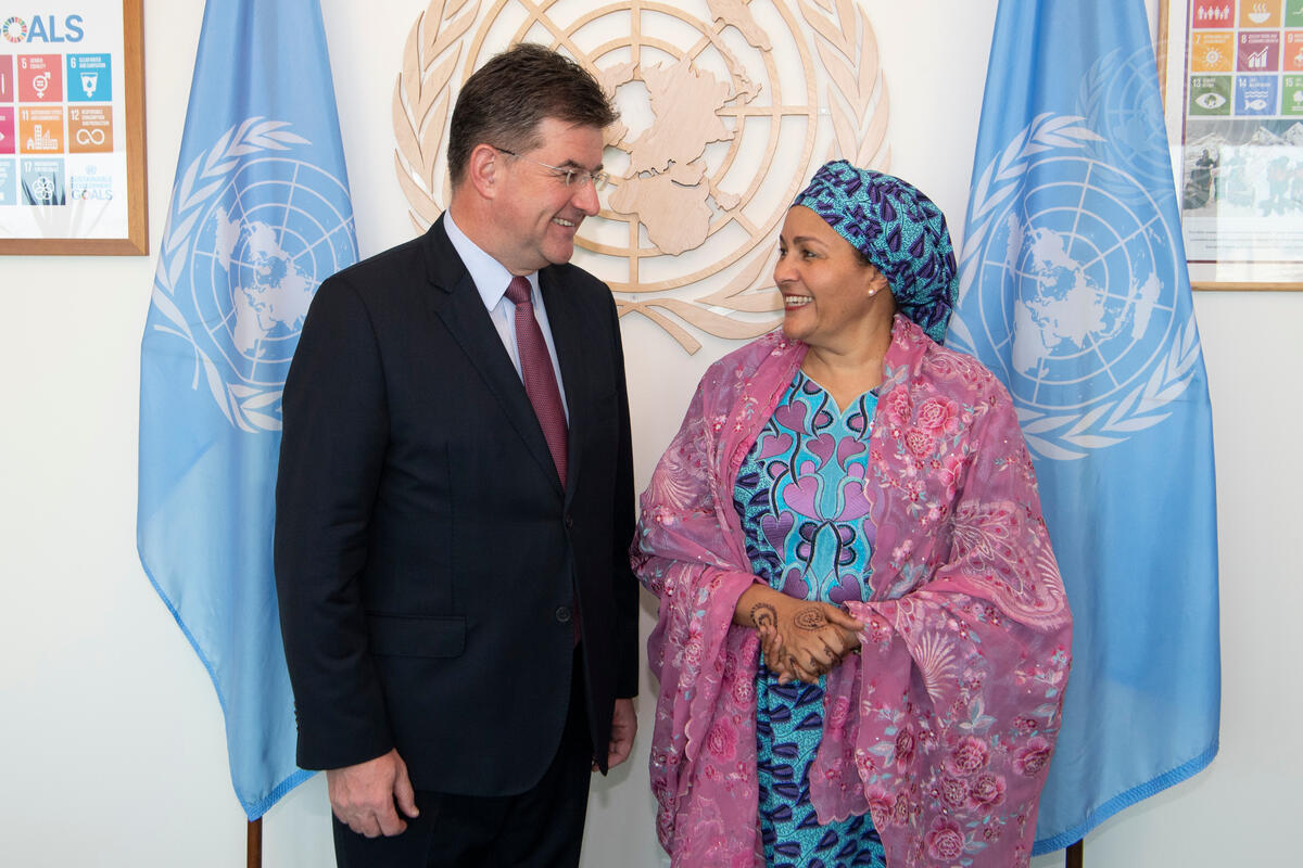 Deputy Secretary-General Amina Mohammed (right) meets with Miroslav Lajcák, Foreign Minister of the Slovak Republic.