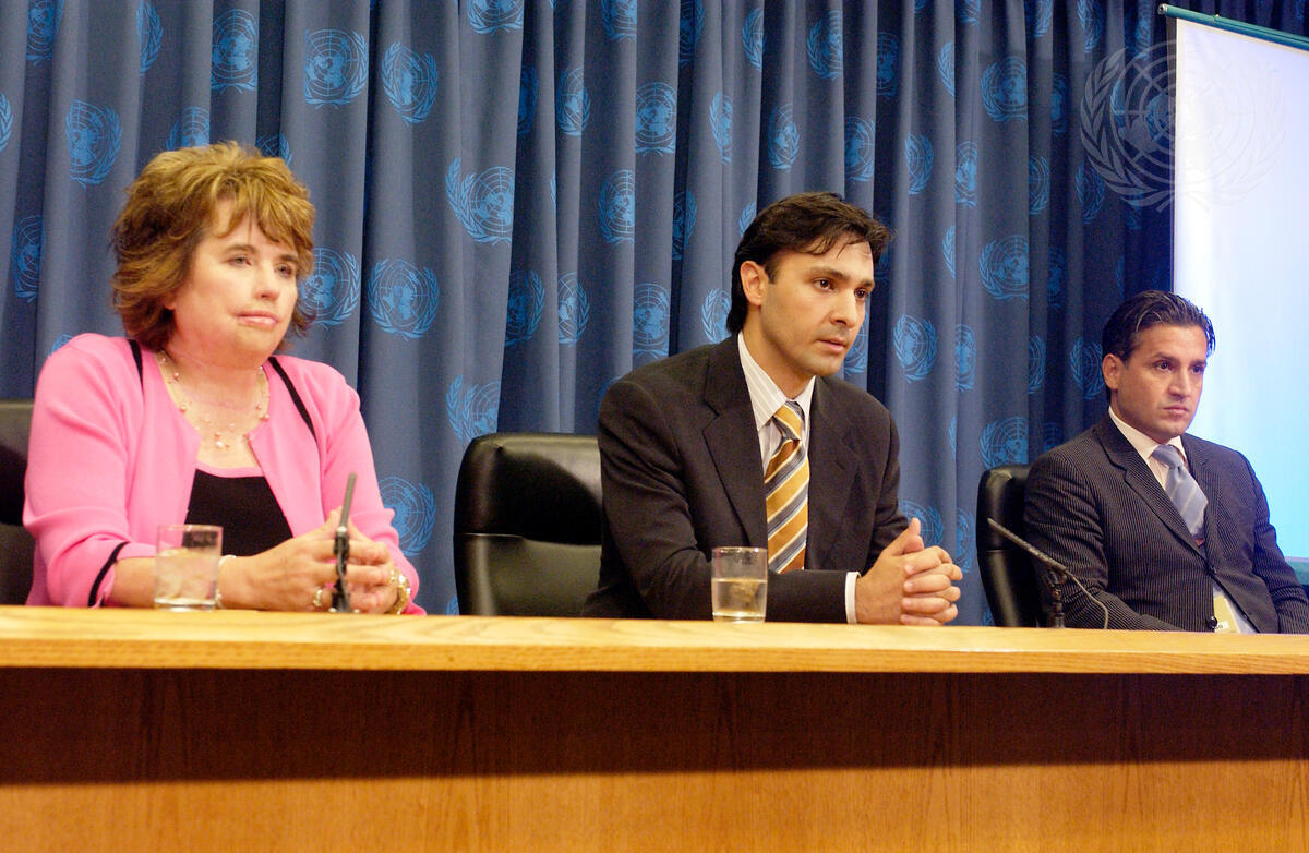 Members of the Virtue Foundation discuss and promote a new documentary film called ""Stolen Faces"" during a press conference today at UN Headquarters. Left to right are: Cindi Broadus, author of ""A Random Act""; Ebby Elahi, Founder and Executive Director of the Stolen Faces Project of the Virtue Foundation; and Joseph Salim, Executive Director of the Virtue Foundation.