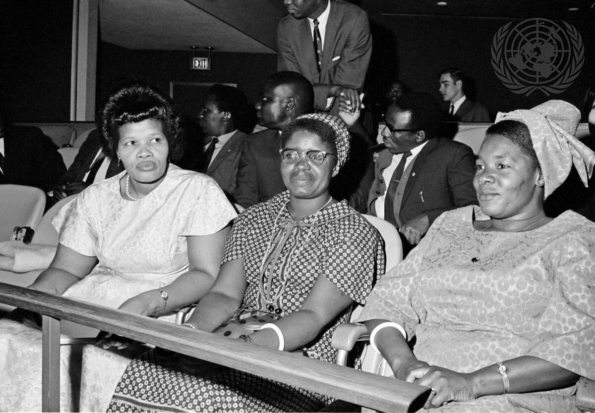 to left) Mrs. Kaunda; Mrs. S. M. Kapwepwe, wife of Zambia's Minister for Foreign Affairs; and Mrs. J. B. Mwemba, wife of Zambia's Permanent Representative to the United Nations.