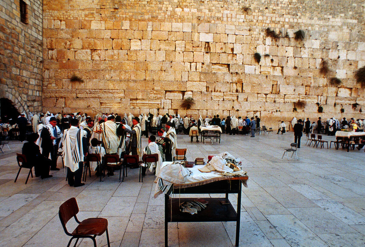 Jews congregate for prayer at the Wailing Wall, Jerusalem.