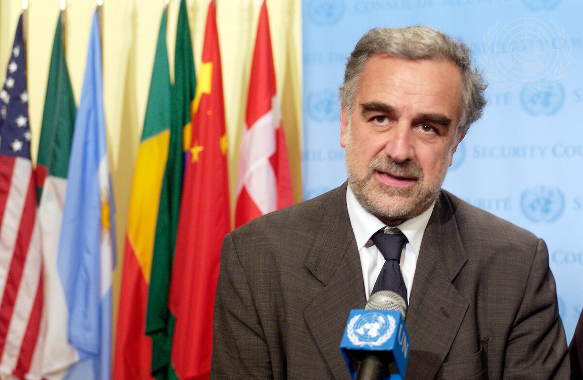 Luis Moreno-Ocampo, Chief Prosecutor of the International Criminal Court (ICC), briefs journalists shortly after he emerged from an open meeting of the Security Council on Sudan, today at UN Headquarters.