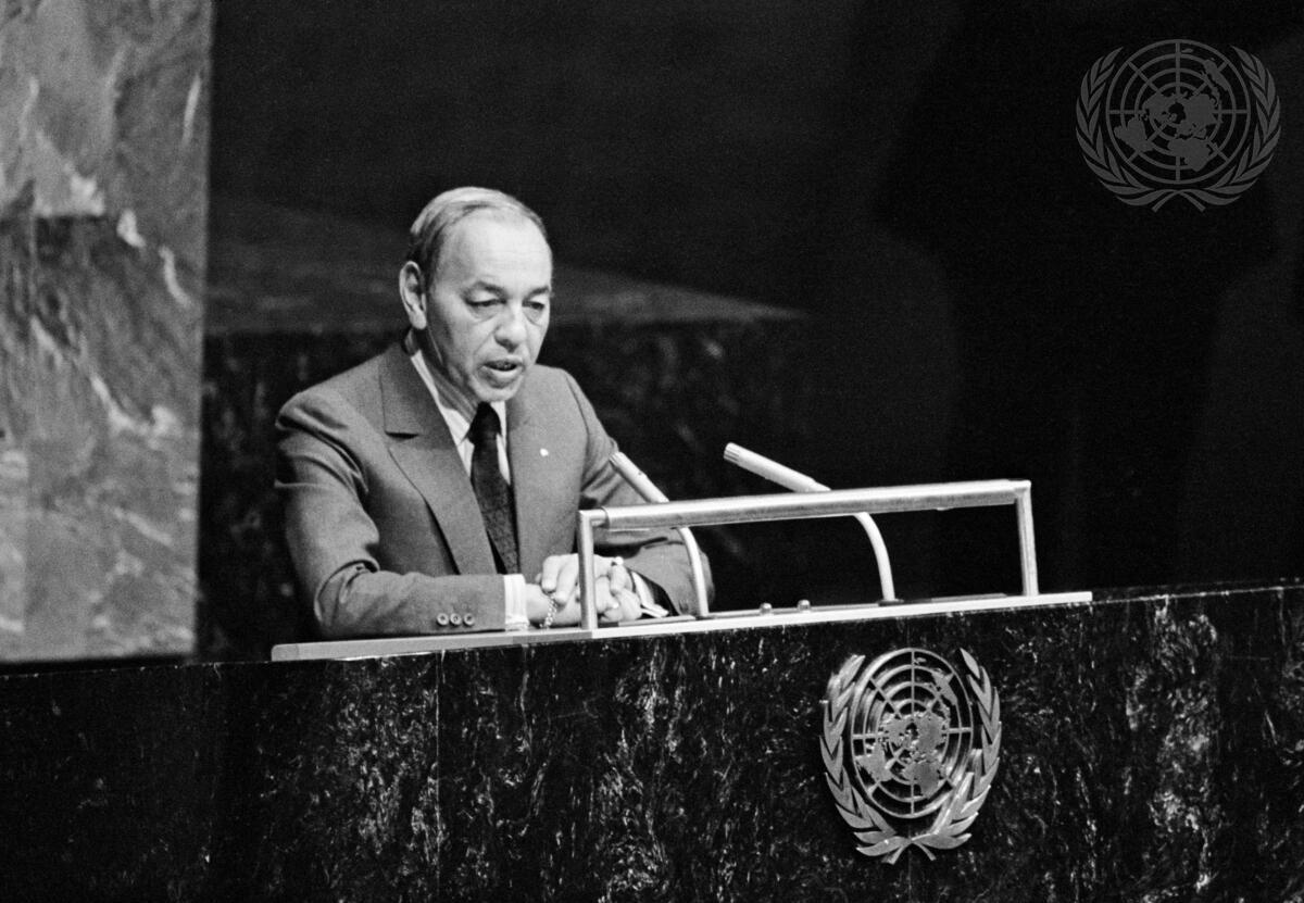 King Hassan II addressing the General Assembly on 26 October.