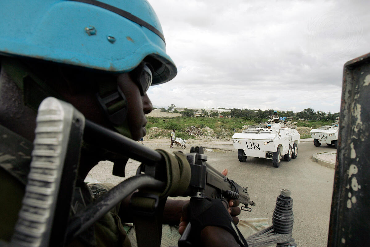 Jean-Marie Guéhenno, Under-Secretary-General for Peacekeeping Operations, and Juan Gabriel Valdés, Special Representative of the Secretary-General and Head of the United Nations Stabilization Mission in Haiti (MINUSTAH) (both not in picture), accompany a Brazillian patrol in Bel-Air, a hillside ravaged by armed bandits.