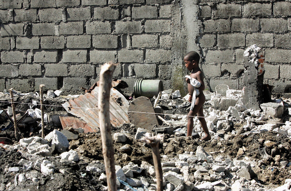 A child is pictured amidst the ruins of a Cap Haitien street; a typical street scene of this city of 150,000 residents.