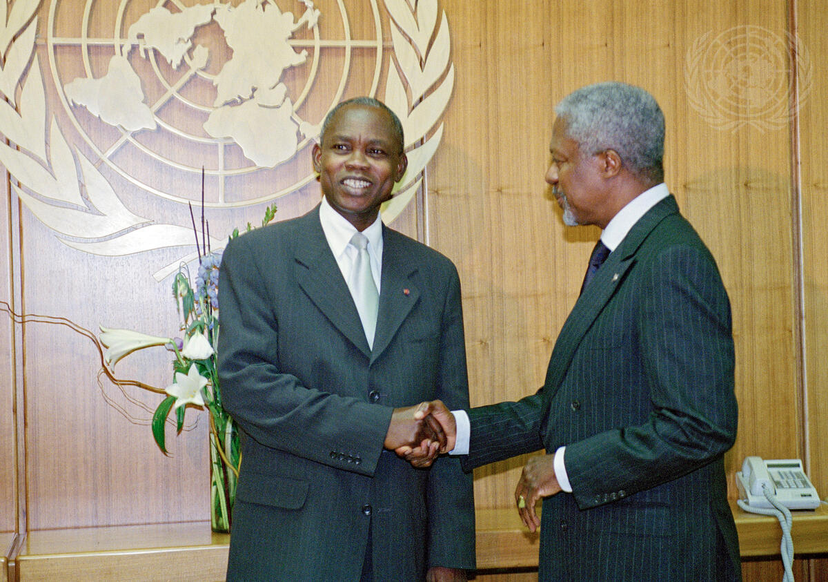 Secretary-General Kofi Annan (right) meets with Agba Otikpo Mezode, Minister for Foreign Affairs of the Central African Republic.