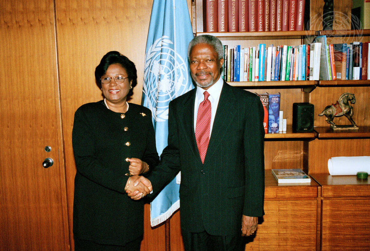 Secretary-General Kofi ANNAN (right) meets with Billie MILLER, Deputy Prime Minister and Minister for Foreign Affairs, Tourism and International Transport of Barbados.