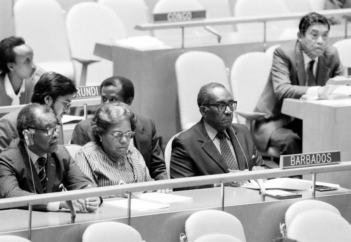 The Delegation of Barbados headed by J. CAMERON TUDOR, Minister for Foreign Affairs, sitting behind name plate.