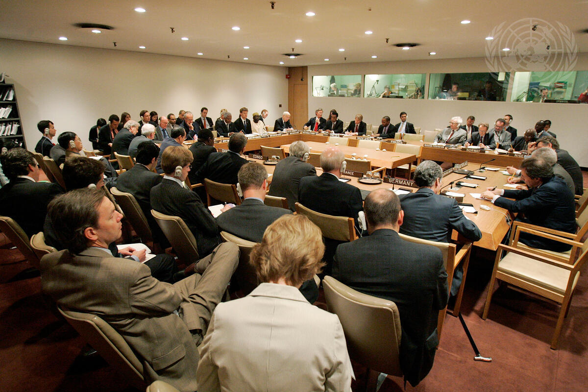 A wide view of a meeting of the Group of Friends on Darfur, Sudan, at UN Headquarters. Secretary-General Kofi Annan and other senior UN officials participated in the meeting.