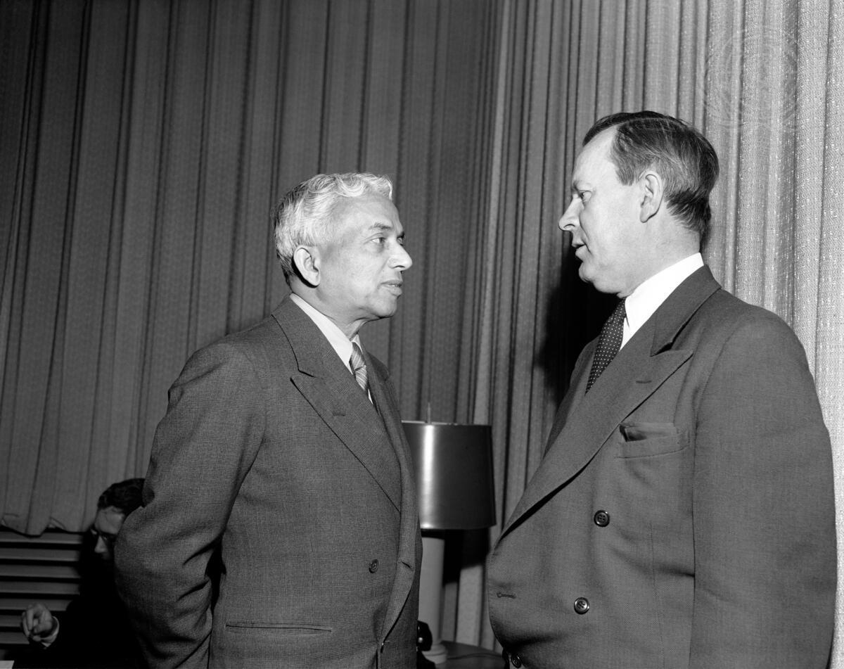 Caption Description Sir Benegal N. Rau (left), Permanent Representative of India to the United Nations, with Mr. Lester B. Pearson, Canadian Secretary of State for External Affairs. Sir Benegal, Mr. Pearson and Ambassador Nasrollah Entezam were the members of the three-man truce commission who tried without success to bring about a peaceful settlement of the Korean conflict.