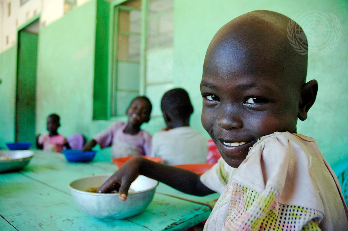 Children have lunch at the Juba Orphanage, today in Juba, Sudan.