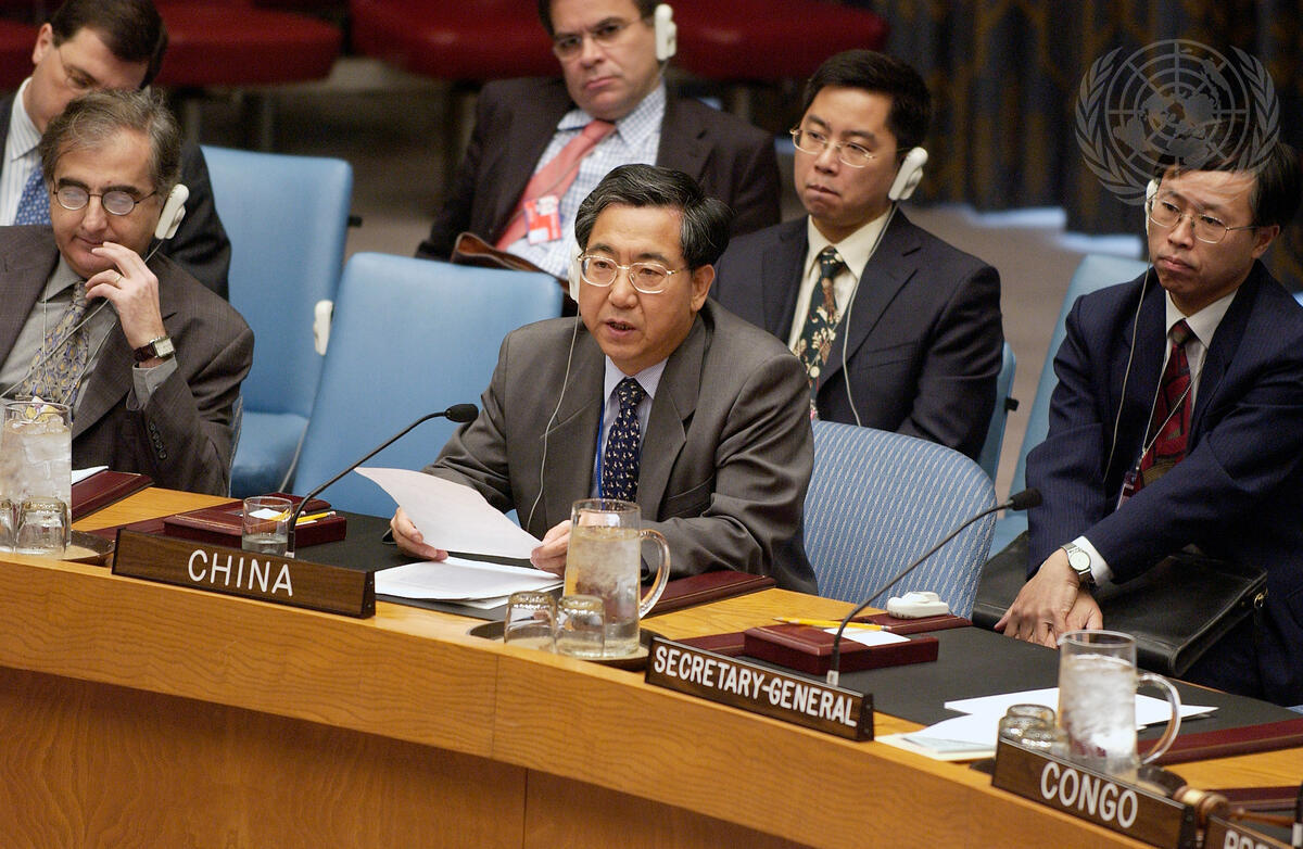 Guangya Wang, Permanent Representative of China to the United Nations, addresses a meeting of the Council on Lebanon, today at UN Headquarters in New York.