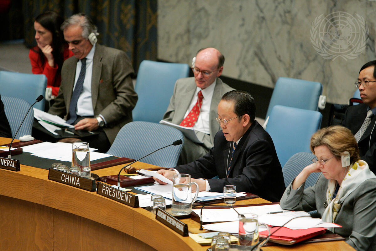 Guangya Wang, Permanent Representative of China to the United Nations and President of the Security Council for April 2006, delivers the president's statement on Chad during the Council's meeting, today at UN Headquarters in New York.