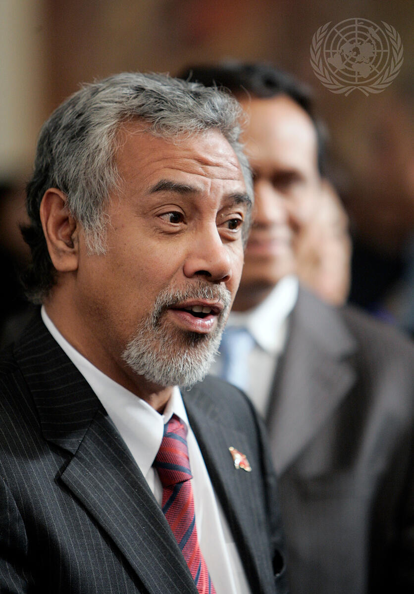 Kay Rala Xanana Gusmão, President of Timor-Leste responds to correspondents' questions at the Security Council stakeout following an open meeting of Council on the situation in his country, today at UN Headquarters.