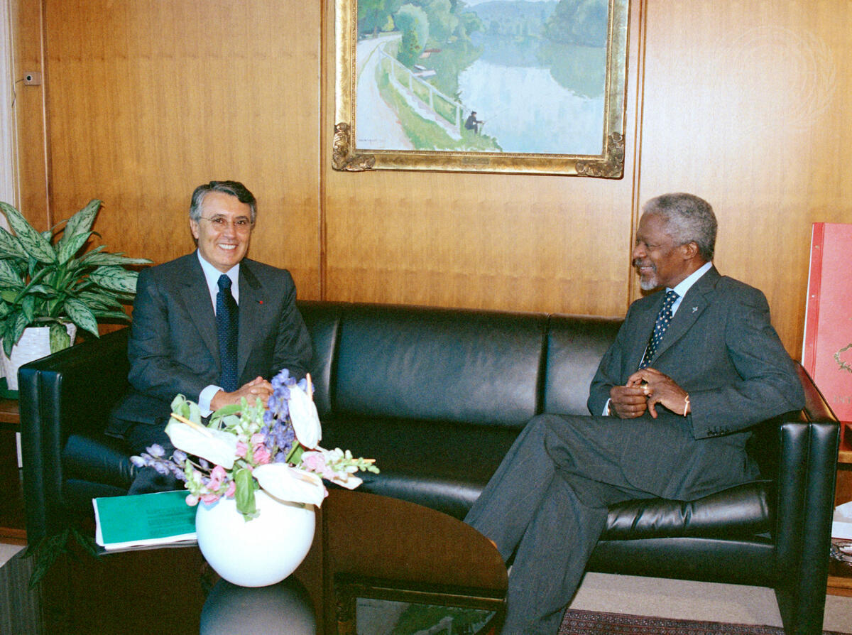Secretary-General Kofi Annan with Mohamed Benaissa (left), the Foreign Minister of Morocco.