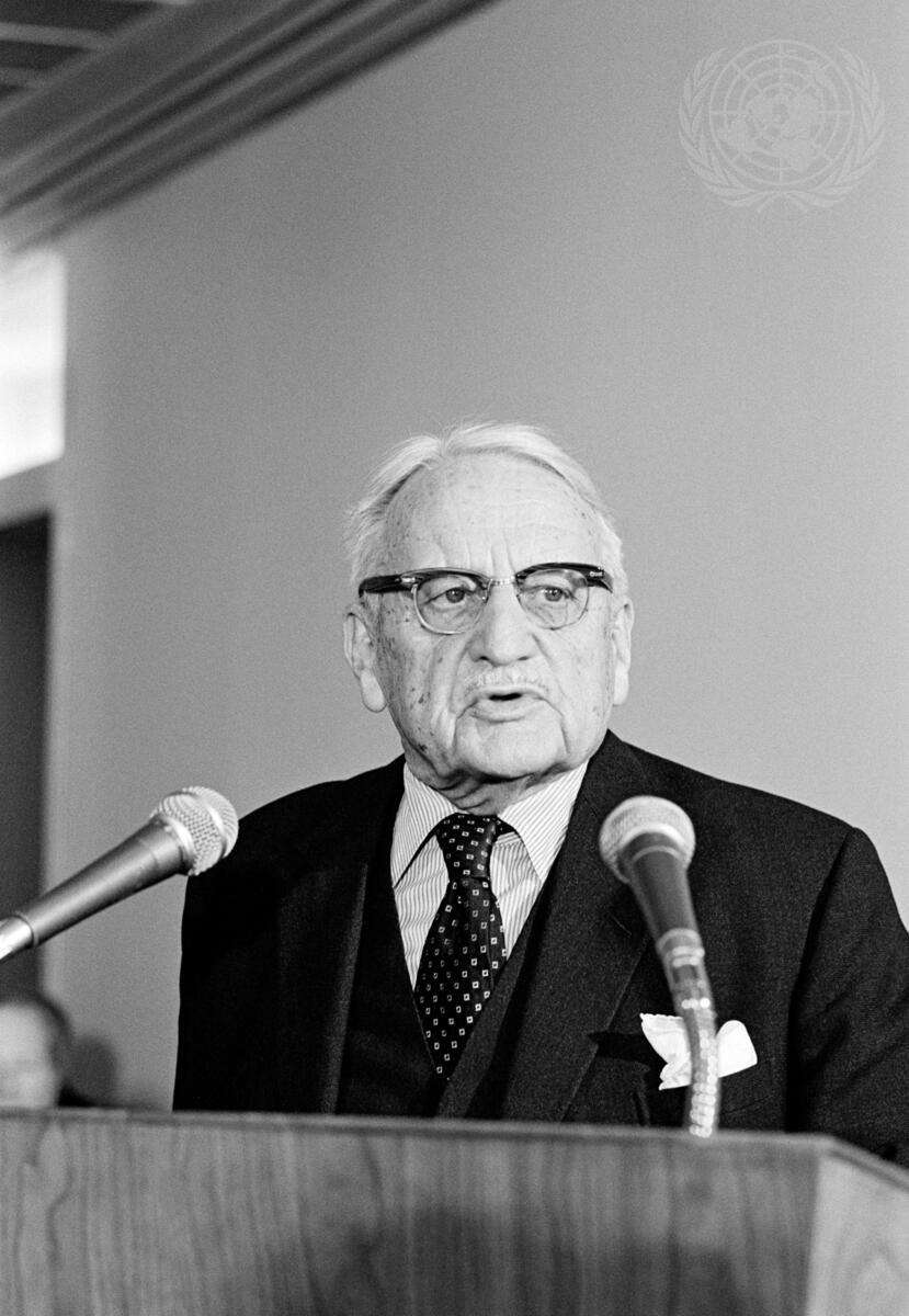 The International Peace Academy, at an United Nations Headquarters reception this evening, celebrated the 25th Anniversary of the establishment of the first United Nations Emergency Force (UNEF). Lieutenant General E.L.M. Burns of Canada, first Commander of UNEF I, was guest of honor - receiving the Academy's Distinguished Peacekeeper's Award from UN Secretary-General Kurt Waldheim. Lieutenant General E.L.M. Burns of Canada accepting the Distinguished Peacekeeper's Award at tonight's reception.
