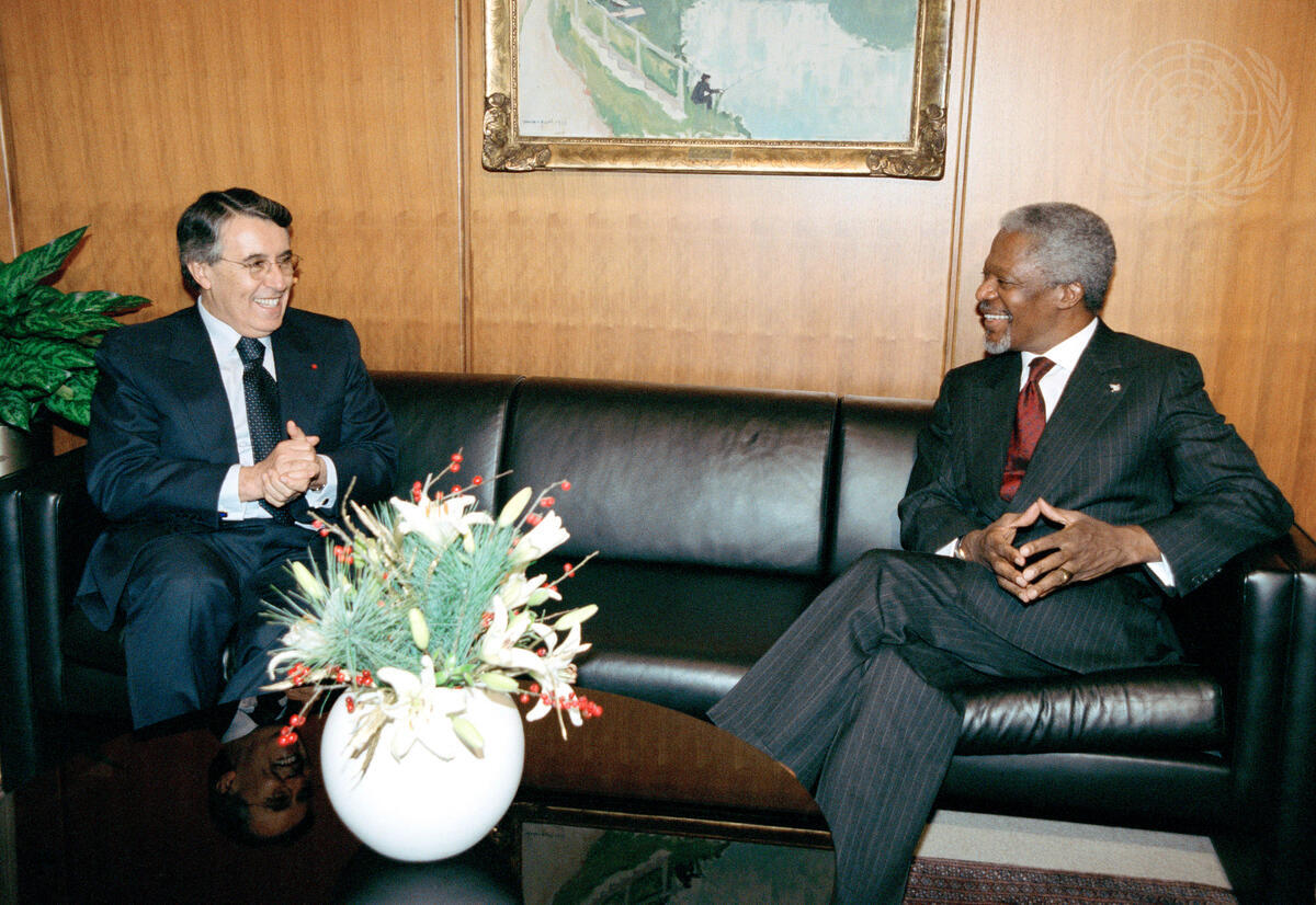 Secretary-General Kofi Annan with Mohamed Benaissa (left), the Foreign Minister of Morocco.