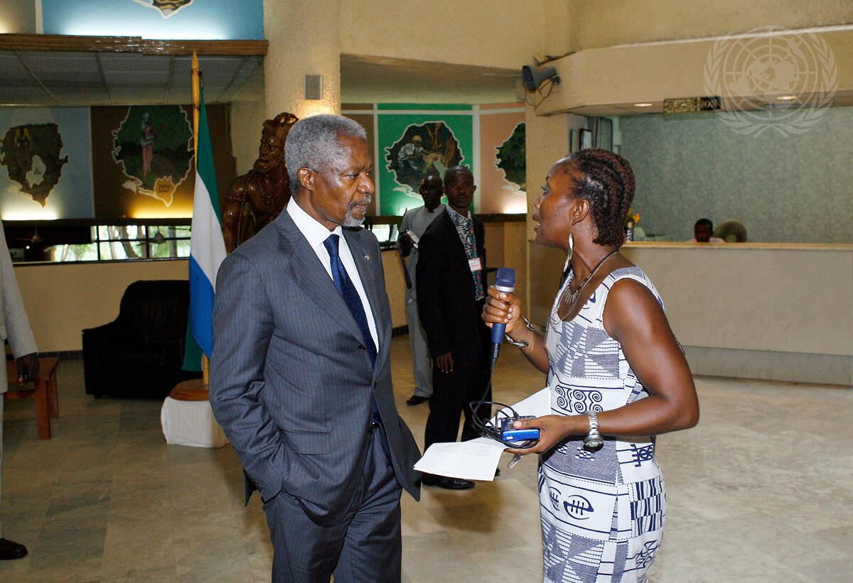 Secretary-General Kofi Annan (left) of the United Nations is interviewed by UN Radio at United Nations Integrated Office in Sierra Leone (UNIOSIL).
