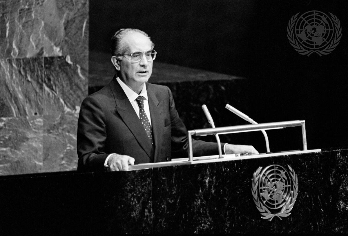 Foreign Minister Emilio COLOMBO of Italy addressing the General Assembly today.