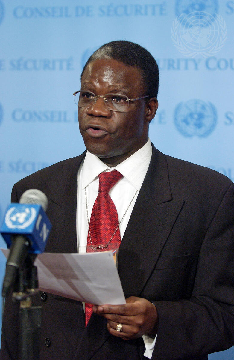 Basile Ikouebe, President of the Security Council for the month of May and Permanent Representative of the Republic of the Congo to the United Nations, reads out a presidential statements on the situation in Timor-Leste adopted by the Council following consultations on that country, at UN Headquarters in New York.