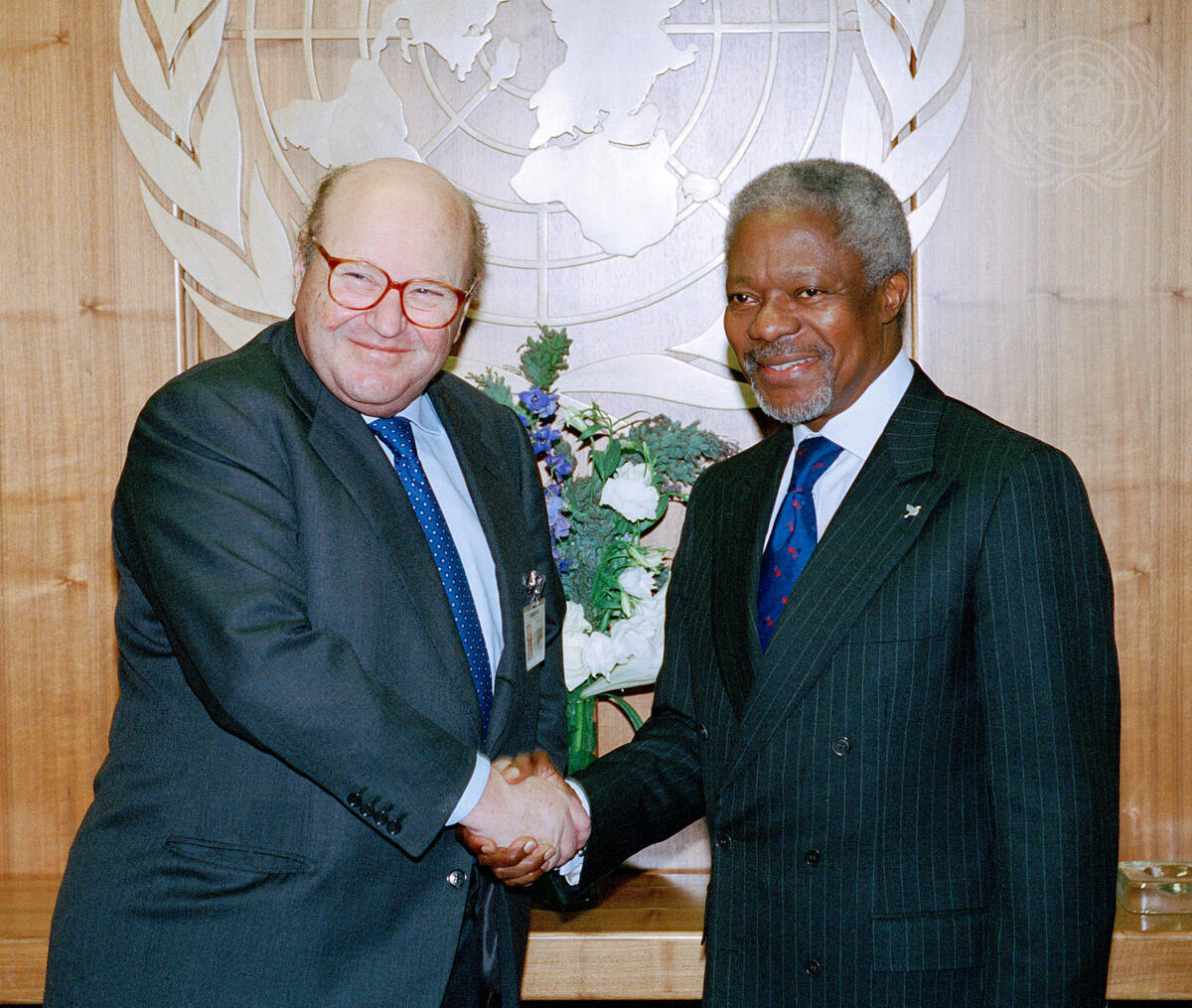 Secretary-General Kofi ANNAN (right) meeting with Renato RUGGIERO, Minister for Foreign Affairs of Italy.