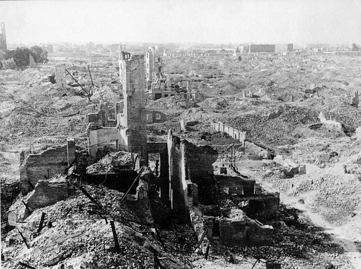 Field team of the Temporary Sub-Commission on Economic Reconstruction of Devastated Areas visits Poland. This photograph shows the destruction in a part of the city of Warsaw.