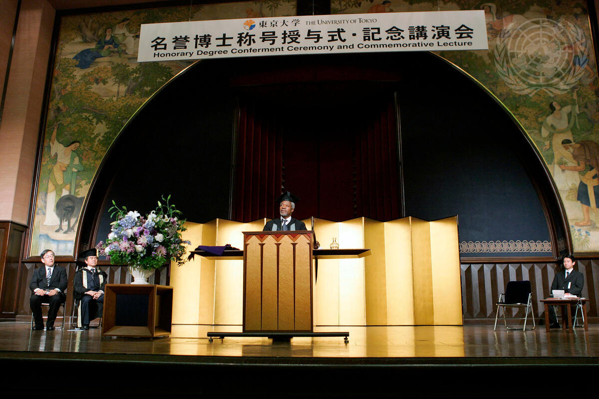 Secretary-General Kofi Annan speaks at Tokyo University in Japan when he was conferred with an honorary degree by that university.