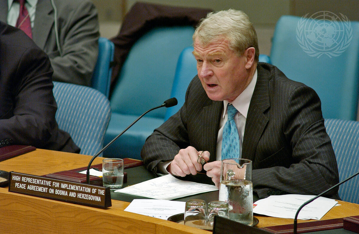 Paddy Ashdown, High Representative for the implementation of the peace agreement in Bosnia and Herzegovina, briefs the Security Council on the situation in that country, today at UN Headquarters.