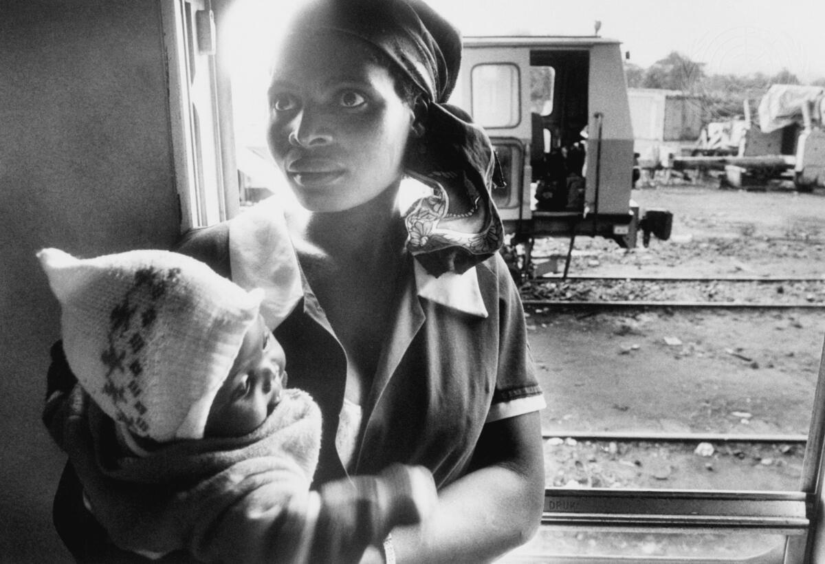 A refugee with her baby on a train in Boane. [Exact date unknown]