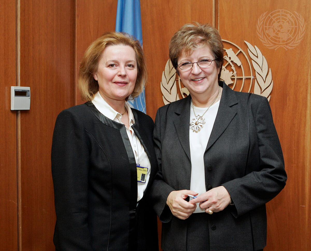 Deputy Secretary-General Louise Fréchette (right) meets with Magda Vásáryová, State Secretary of the Ministry of Foreign Affairs of the Slovak Republic, today at UN Headquarters.