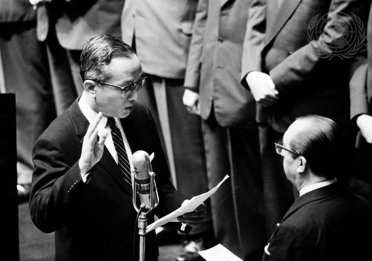 U Thant Takes Oath of Office as Acting UN Secretary-General