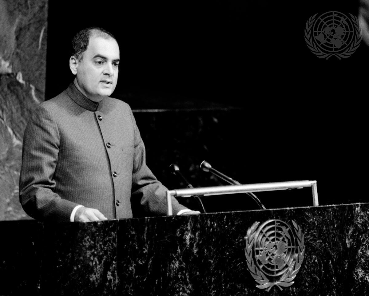 Rajiv Gandhi, Prime Minister of India, addressing the General Assembly.