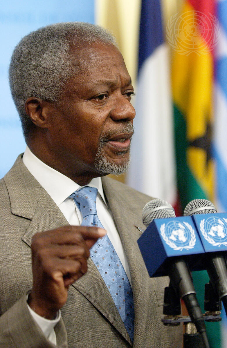 Secretary-General Kofi Annan is briefing correspondents at UN Headquarters in New York, following Security Council consultations on the Middle East.