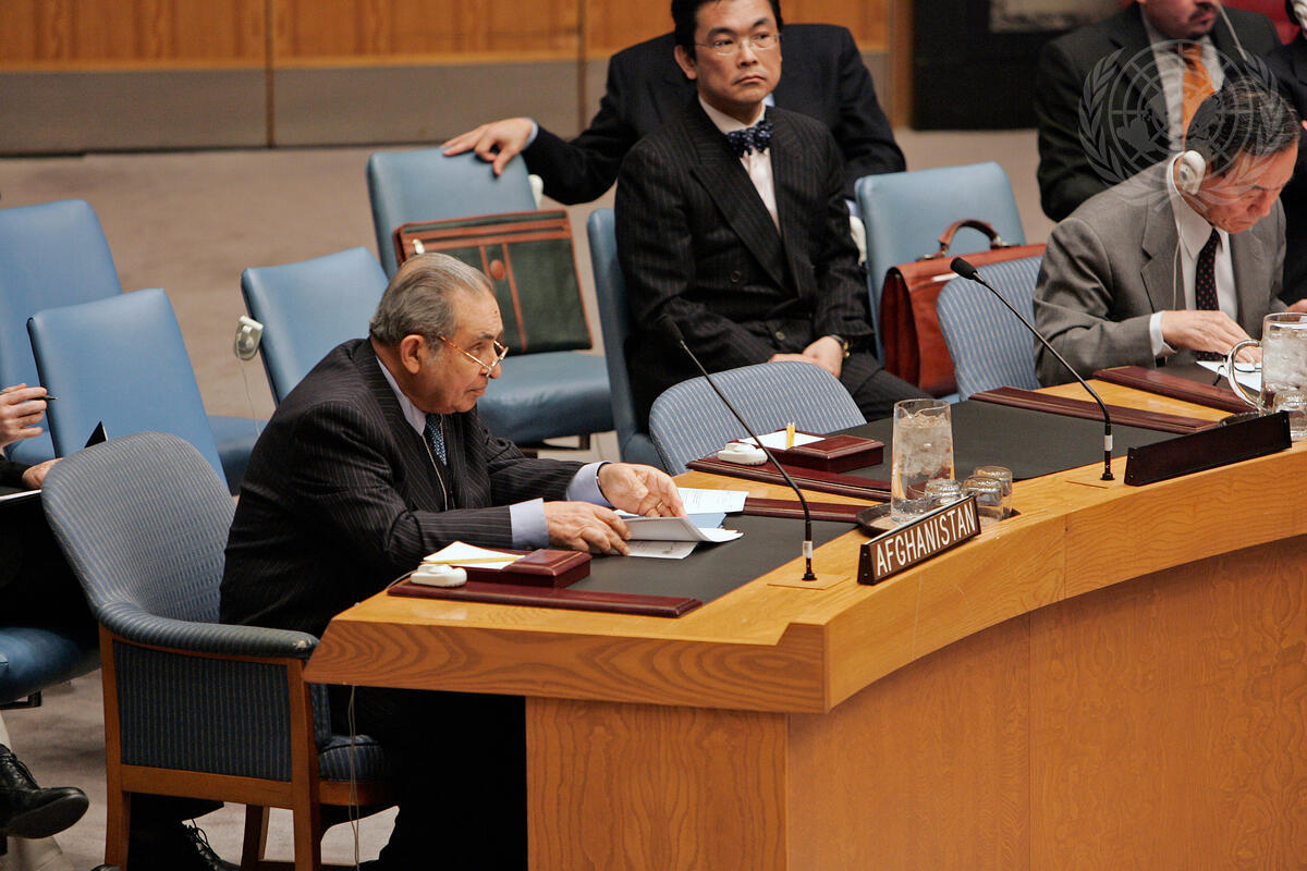 Ravan A. G. Farhâdi, Permanent Representative of Afhgnaistan to the United Nations addressing the Security Council on the situation in his country, today at UN Headquarters.