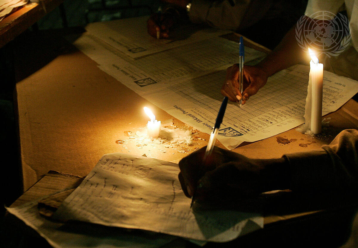 Polling officers and electoral workers counting ballots at the voting centre in the Office Nationale D'Assurance Vieilles on Delmas 17 long after midnight in Haiti's presidential and parliamentary elections.