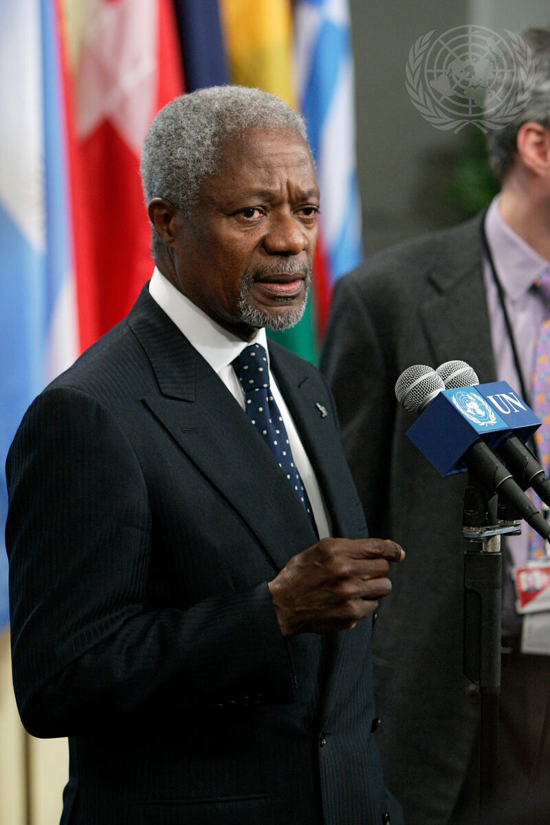 Secretary-General Kofi Annan speaks to the media at Security Council stakeout following the release of his statement on the establishment of the Human Rights Council, today at UN Headquarters in New York.